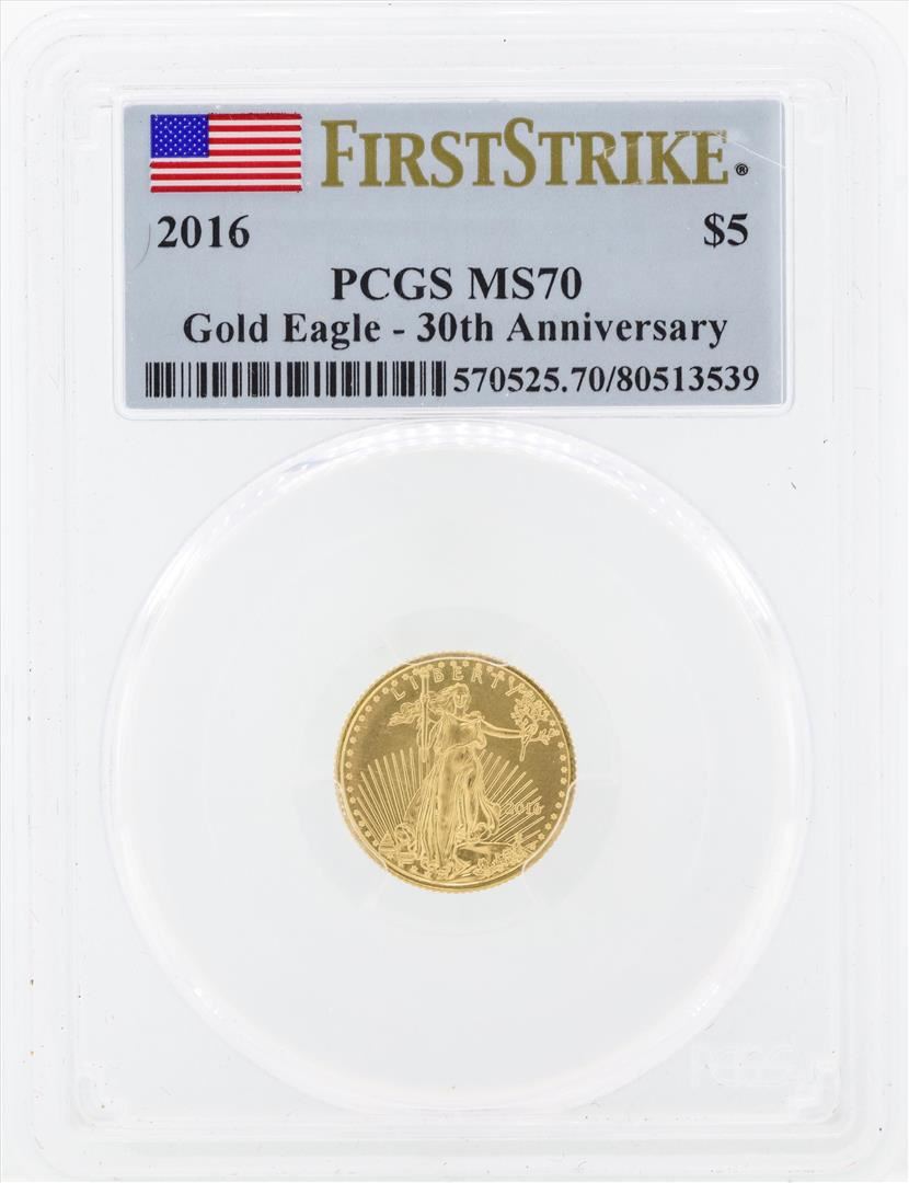One 2016 $5 American Gold Eagle Coin PCGS MS70 First Strike. PCGS Graded.