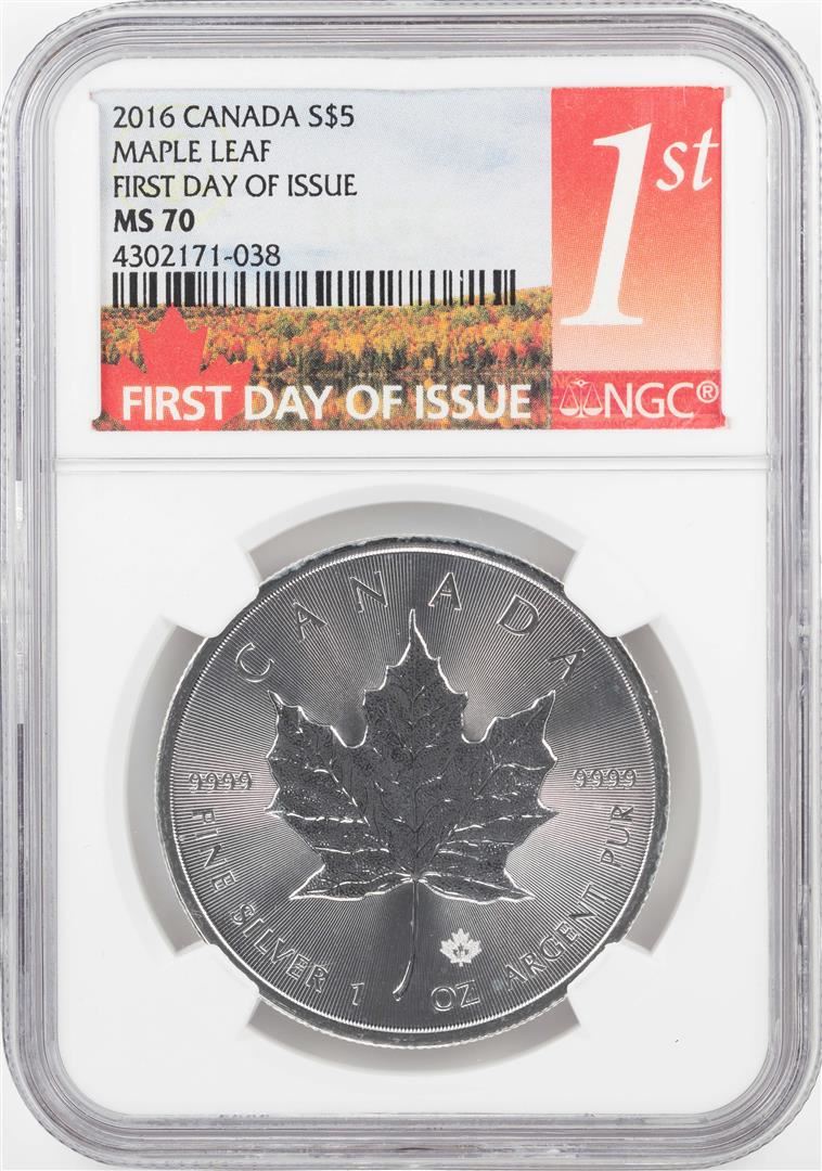 2016 $5 Canada Maple Leaf Silver Coin NGC MS70 First Day of Issue