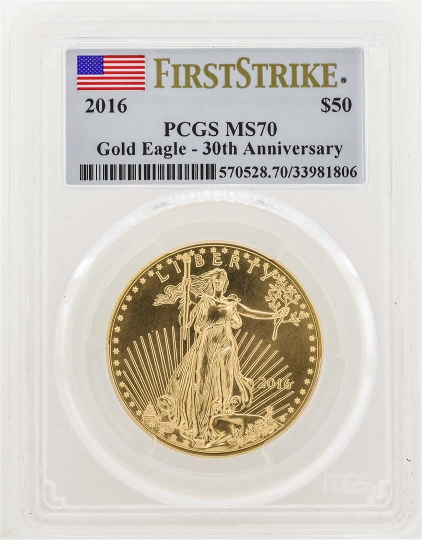 One 2016 $50 American Gold Eagle Coin PCGS MS70 30th Anniversary First Strike. PCGS Graded.