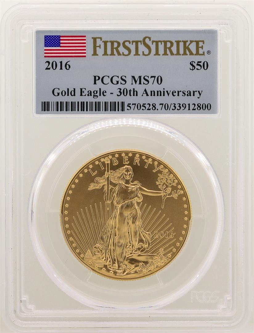 One 2016 $50 American Gold Eagle Coin PCGS MS70 First Strike. PCGS Graded.