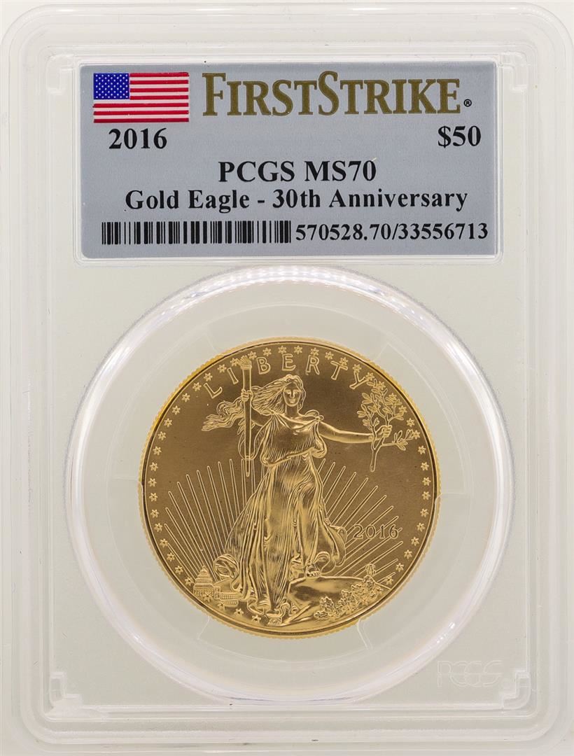 One 2016 $50 American Gold Eagle Coin PCGS MS70 First Strike. PCGS Graded.