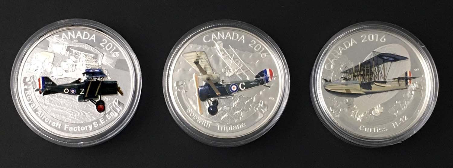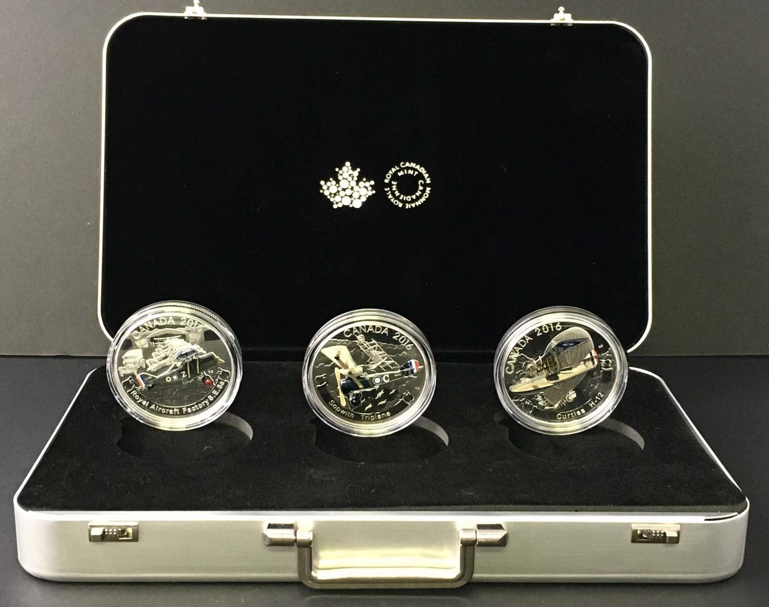 2016 Aircraft of the WWI set w/3 $20.00 .9999 3.0 oz. w/COA in Aluminum Case