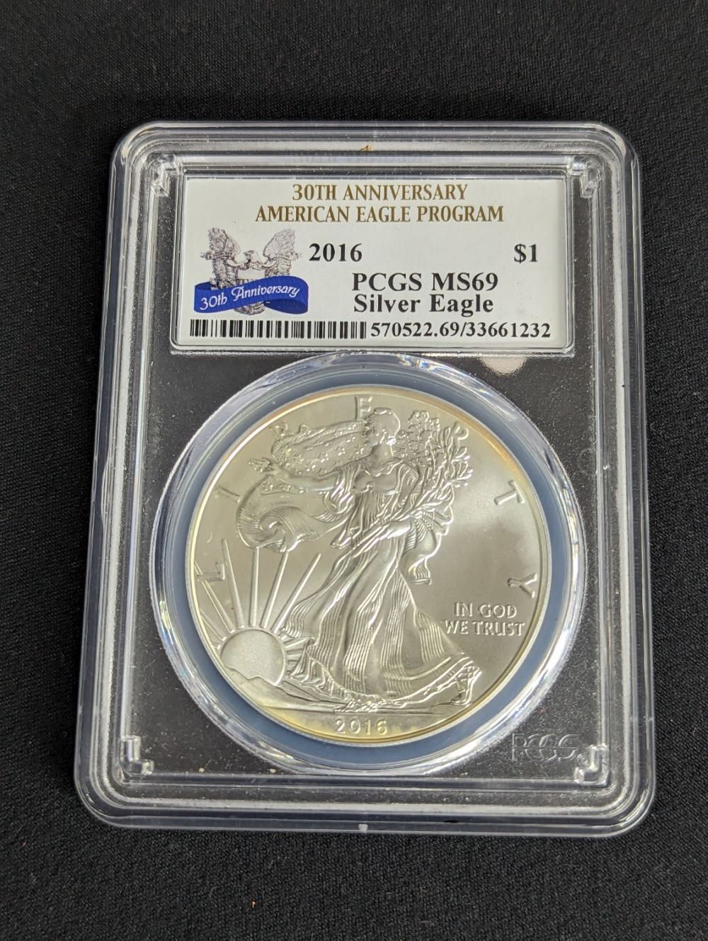 A 2016 American Silver Eagle PCGS MS69 30Th Anniversary of The Silver Eagle Series. A Beautiful gem Coin!