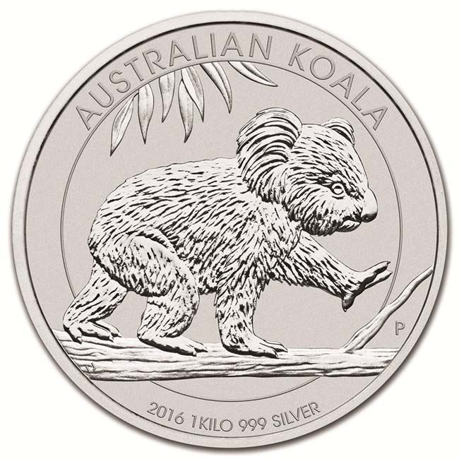 2016 Australia 1 kilo Silver Koala BU/Year:2016/Grade:Brilliant Uncirculated/Grade Service:None /Denomination:30/Mint Mark: P-Perth Mint /Metal Content:32.15 troy oz./Purity:0.999/Manufacturer:Perth Mint /Thickness: 14.6mm/Diameter:100.6mm#SA92665
