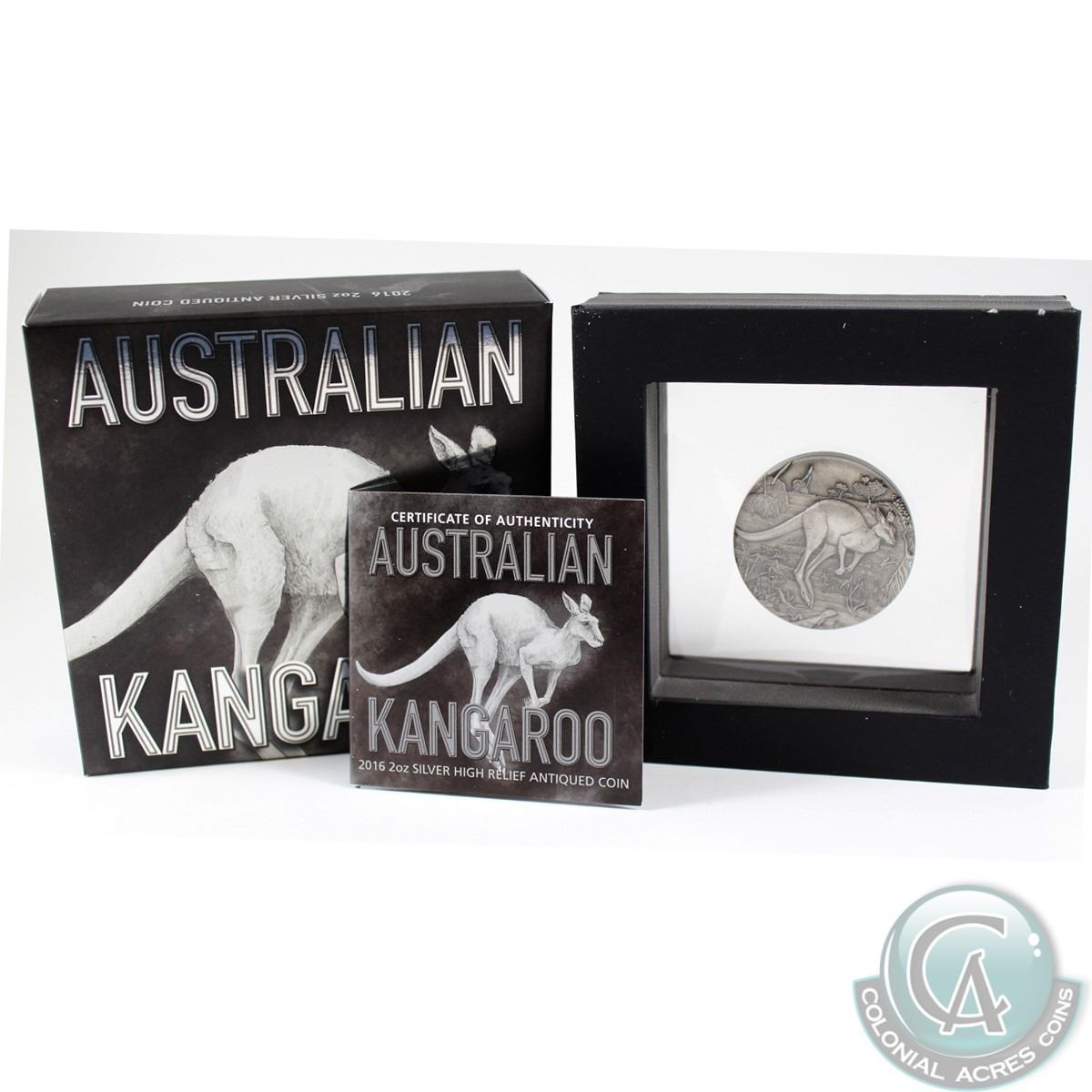 2016 Australia $2 Kangaroo 2oz. Antique Finish High Relief Fine Silver (Tax Exempt)