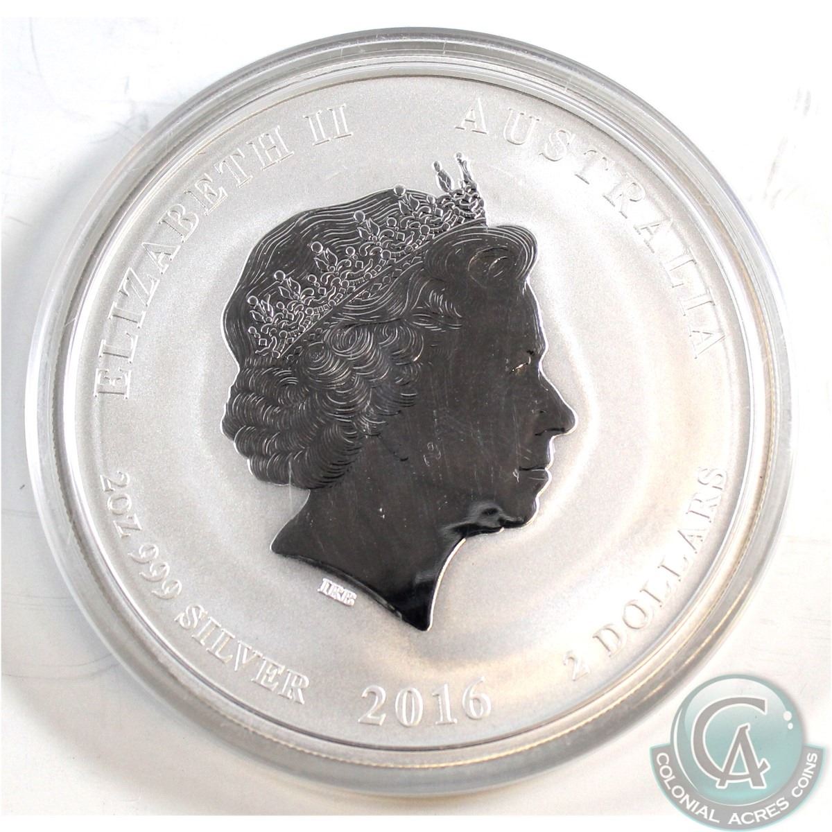 2016 Australia $2 Year of the Monkey 2oz Fine Silver Coin (Tax Exempt). Coin comes Encapsulated.