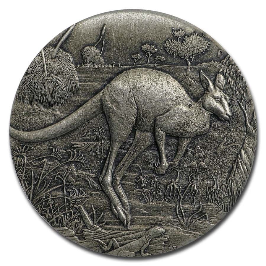 2016 Australia 2 oz Silver HR Kangaroo MS-70 PCGS (Antiqued)