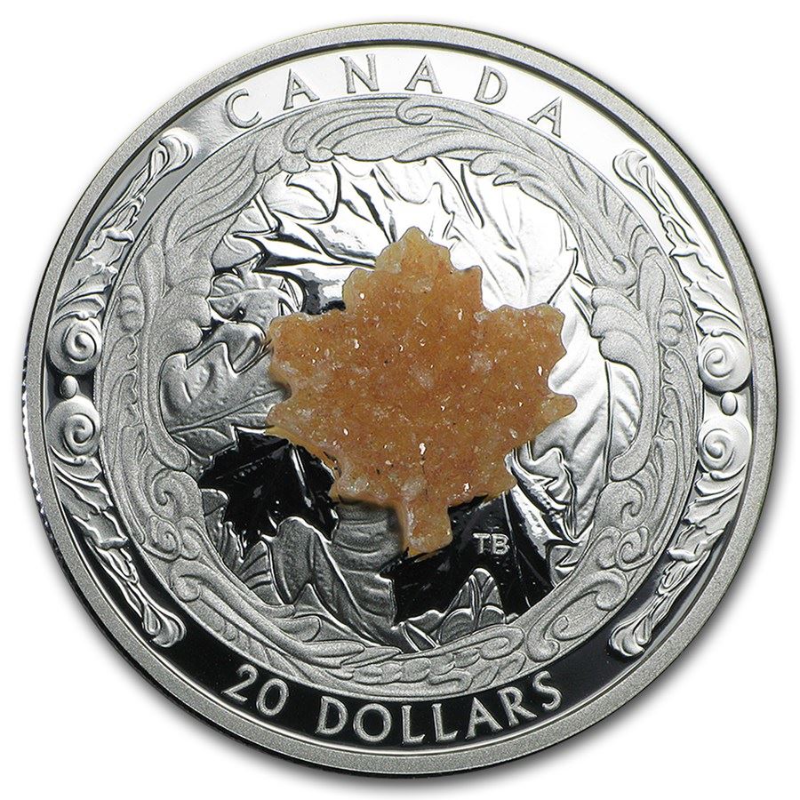 2016 Canada 1 oz Silver $20 Majestic Maple Leaves (w/Drusy Stone)