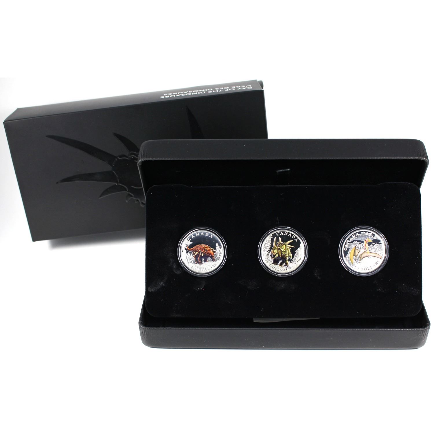 2016 Canada $10 Day of the Dinosaurs Fine Silver 3-Coin Set (Capsules may be lightly scratched). TAX Exempt