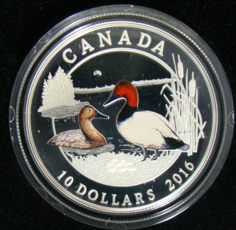 2016 Canadian Fine Silver $10 Coin - Ducks of Canada Series - Canvasback - In Original Box With COA - NO TAX