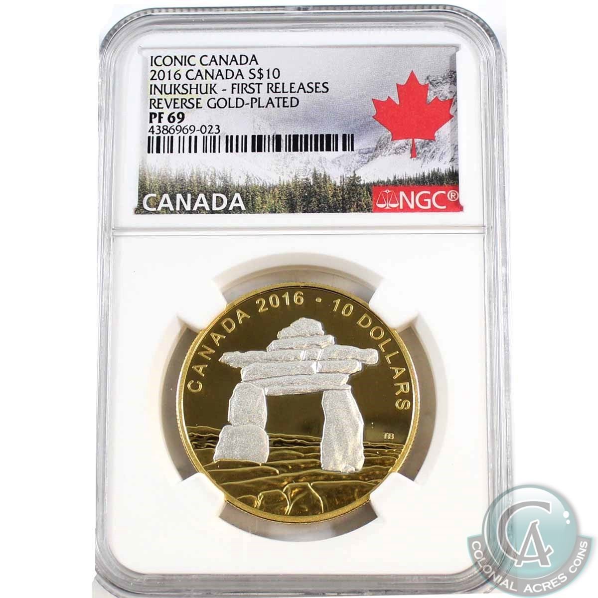 2016 Canada $10 Iconic Inukshuk Reverse Gold-Plated NGC Certified PF-69 First Releases (TAX Exempt)
