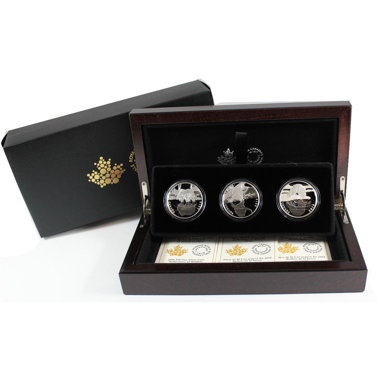 2016 Canada $10 Reflections of Wildlife Fine Silver 3-coin Set in Deluxe Case (Tax Exempt)