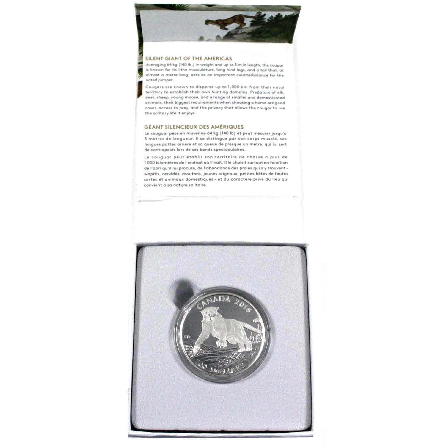 2016 Canada $100 for $100 The Cougar Fine Silver Coin (Light residue on box). TAX Exempt