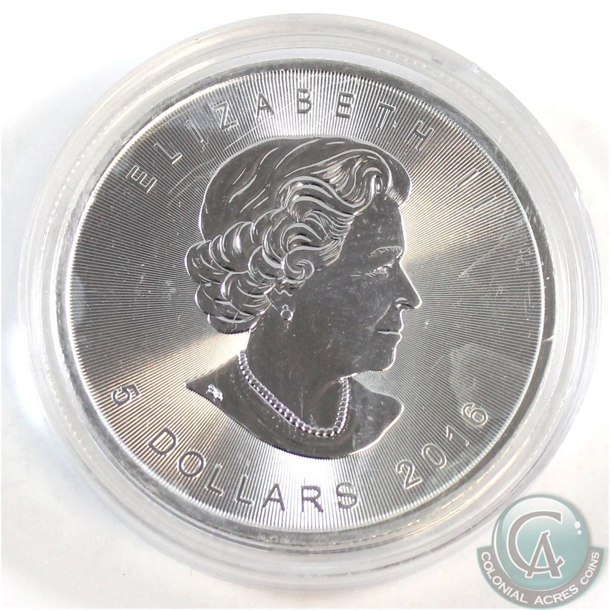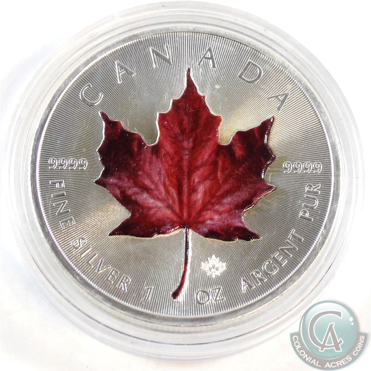 2016 Canada 1oz .9999 Fine Silver Coloured Red Maple Leaf (Coin is toned & capsule scratched). Tax Exempt
