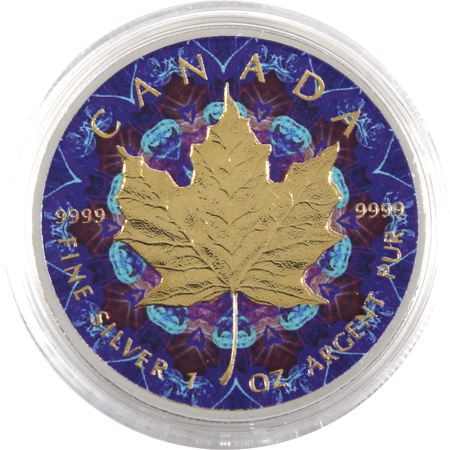 2016 Canada 1oz Coloured & Gilded .9999 Fine Silver Maple Leaf in Capsule (TAX Exempt).