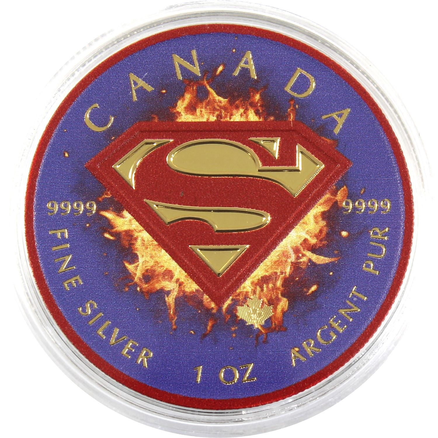 2016 Canada 1oz Coloured & Gilded Superman Shield .9999 Fine Silver Coin (TAX Exempt).