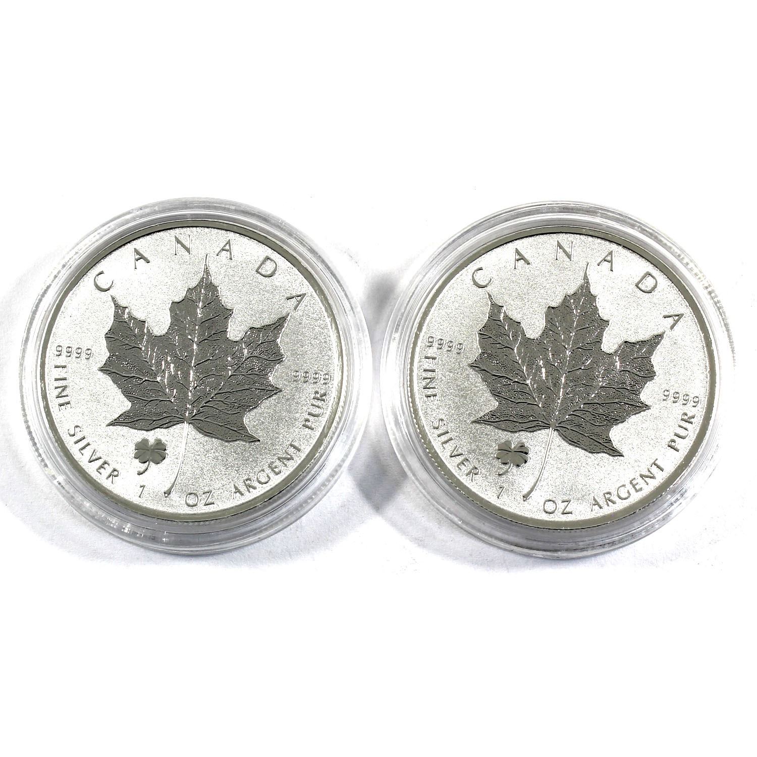 2016 Canada 1oz Four Leaf Clover Privy Mark .9999 Fine Silver Maple Leafs. 2pcs (TAX Exempt)