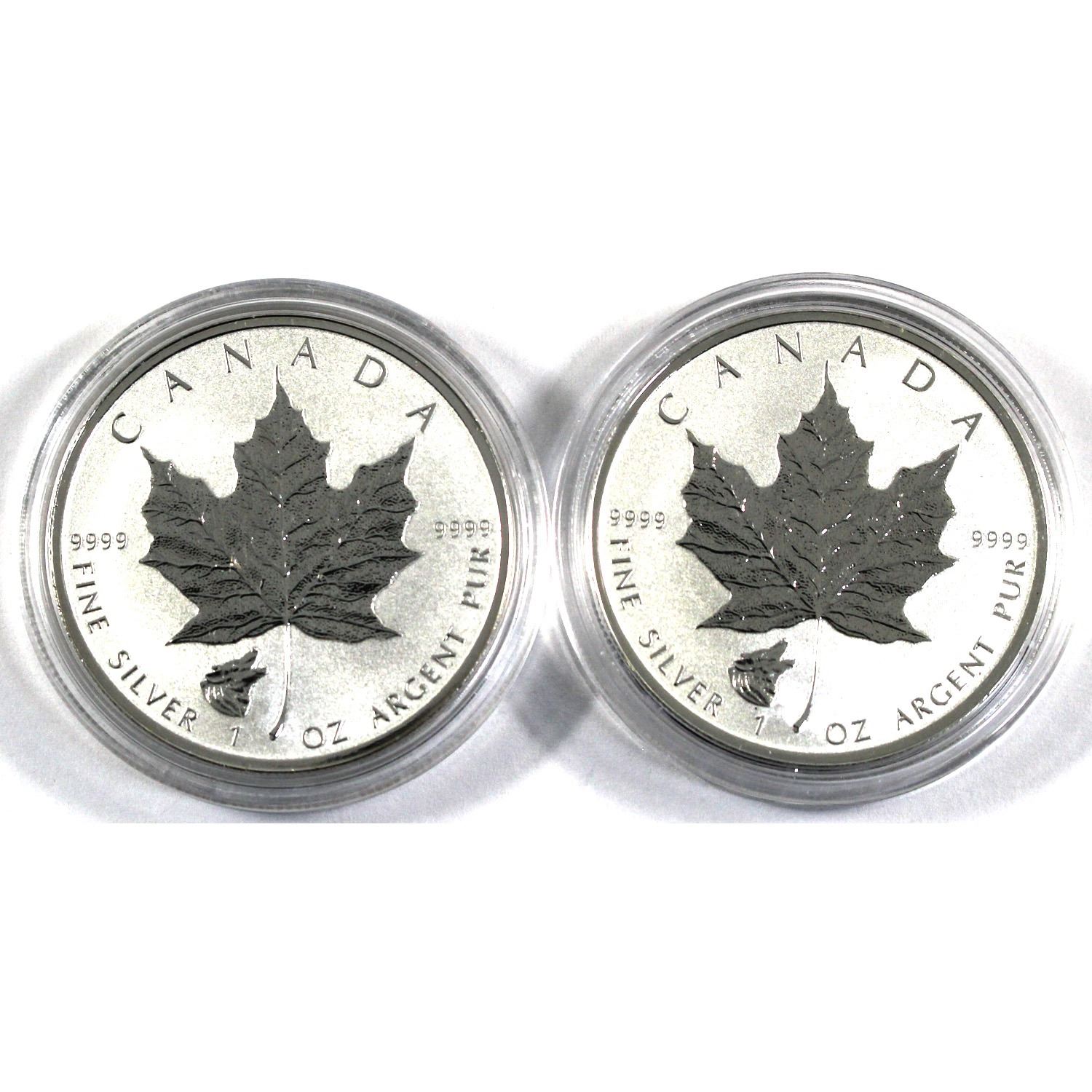 2016 Canada 1oz Wolf Privy .9999 Silver Maple Leafs in Capsules. 2pcs (TAX Exempt)