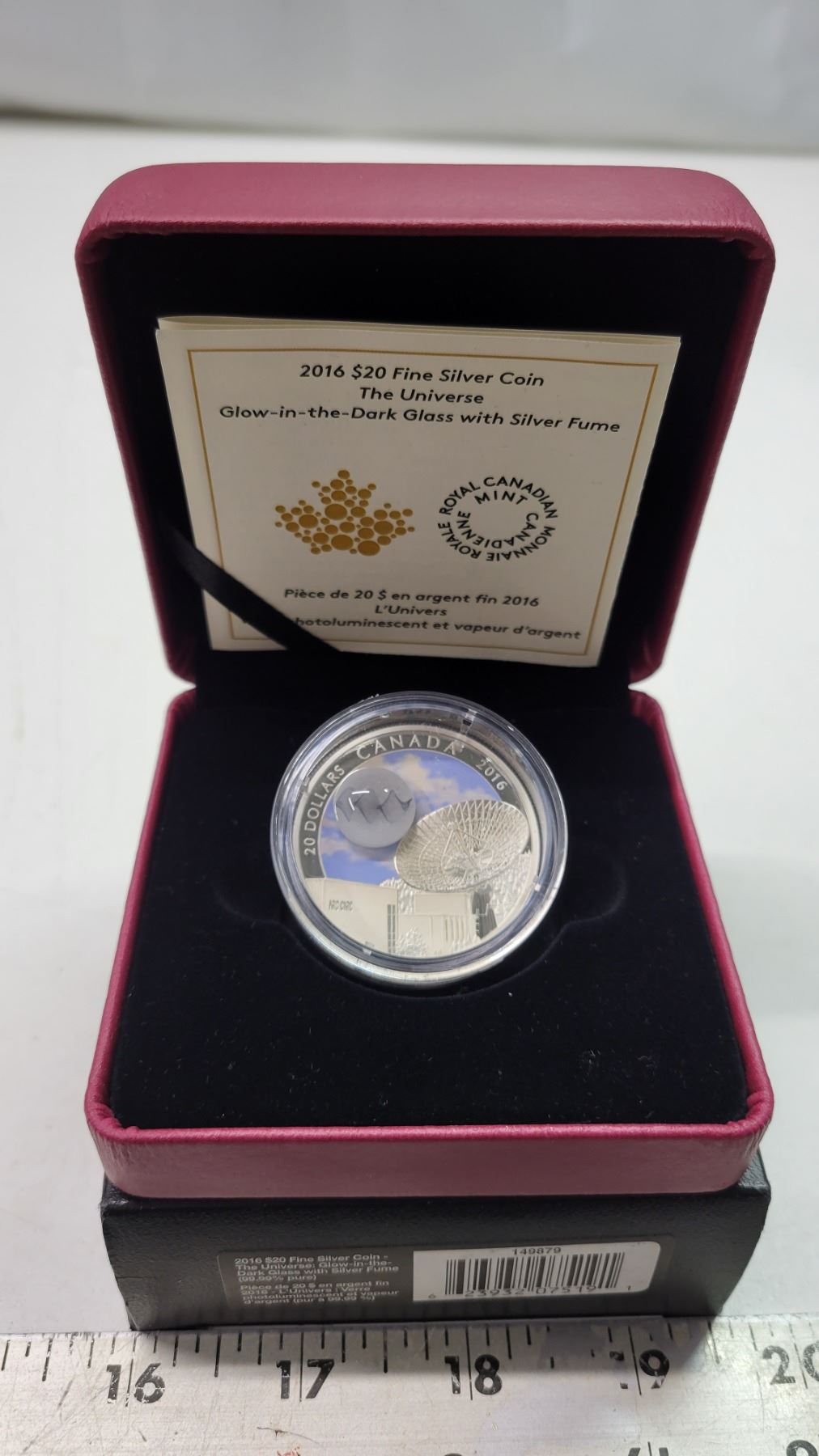 2016 Canada $20 Fine Silver Coin, The Universe, Glow-in-the-Dark Glass with Silver Fume, COA