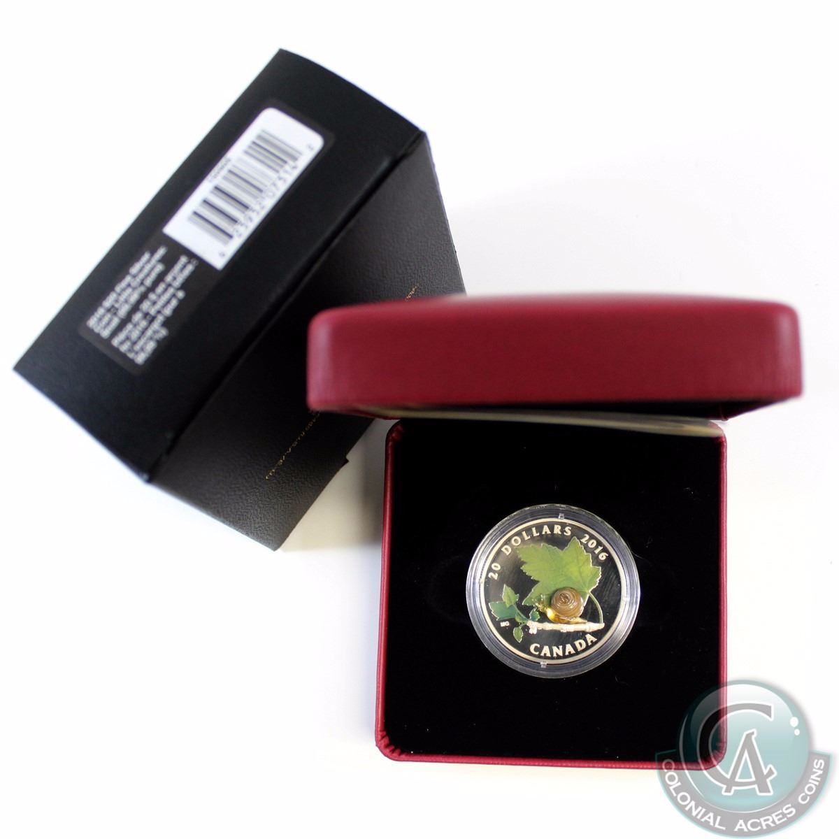 2016 Canada $20 Little Creatures - Snail With Murano Glass Fine Silver Coin (Capsule very lightly scratched) - TAX Exempt