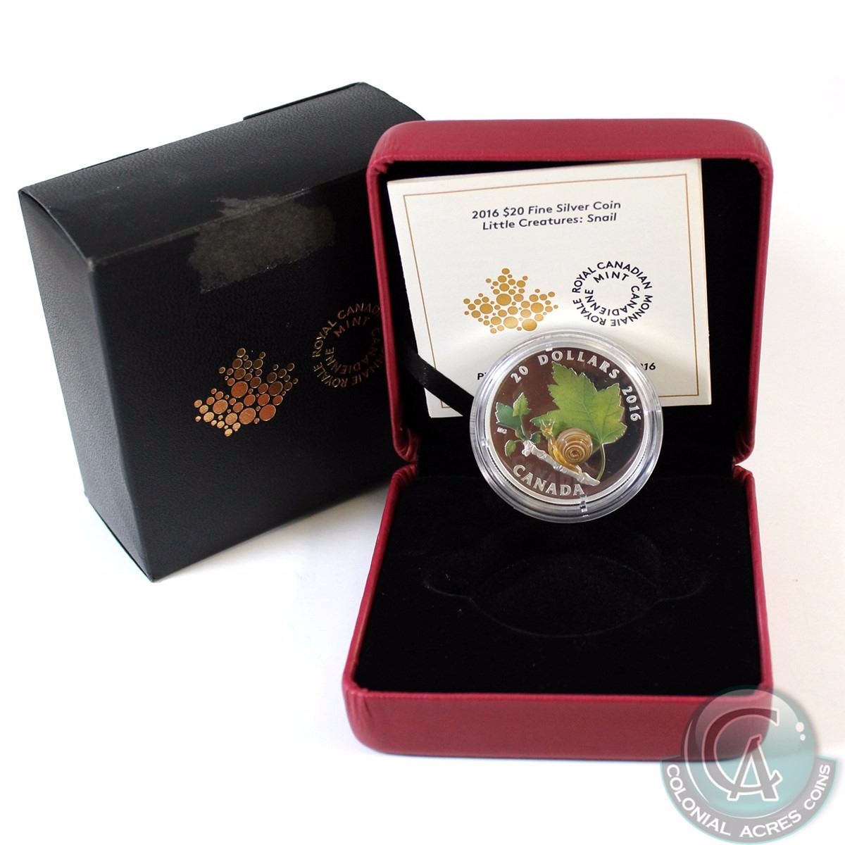 2016 Canada $20 Little Creatures - Snail With Murano Glass Fine Silver Coin (Outer sleeve has surface tear) (TAX Exempt)