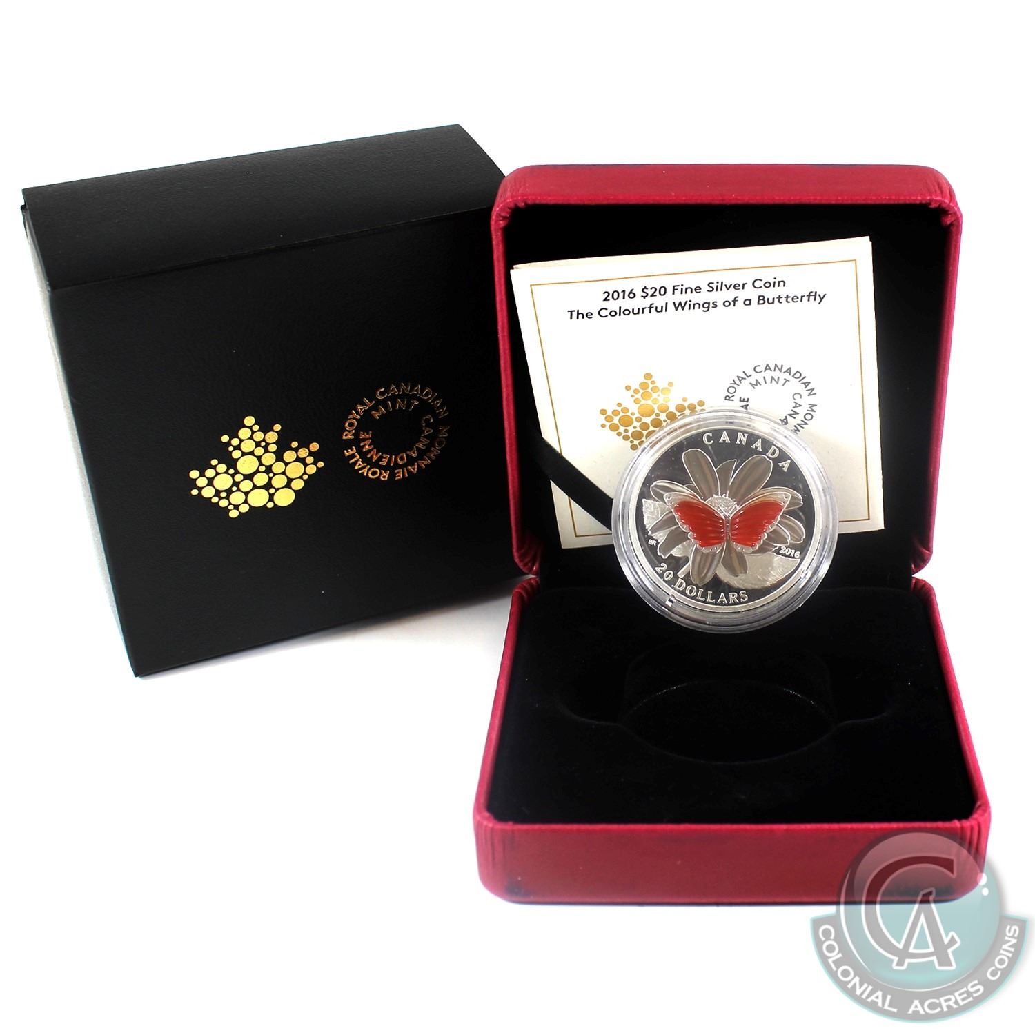 2016 Canada $20 The Colourful Wings of a Butterfly Fine Silver Coin. (TAX Exempt)