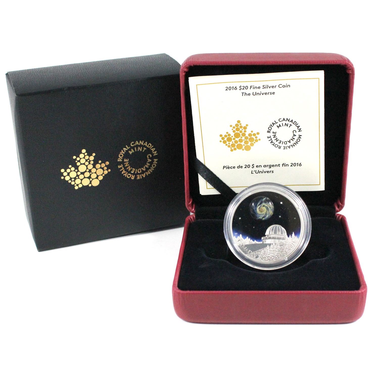 2016 Canada $20 The Universe Fine Silver Coin (Capsule lightly scratched & sleeve lightly bent). TAX Exempt