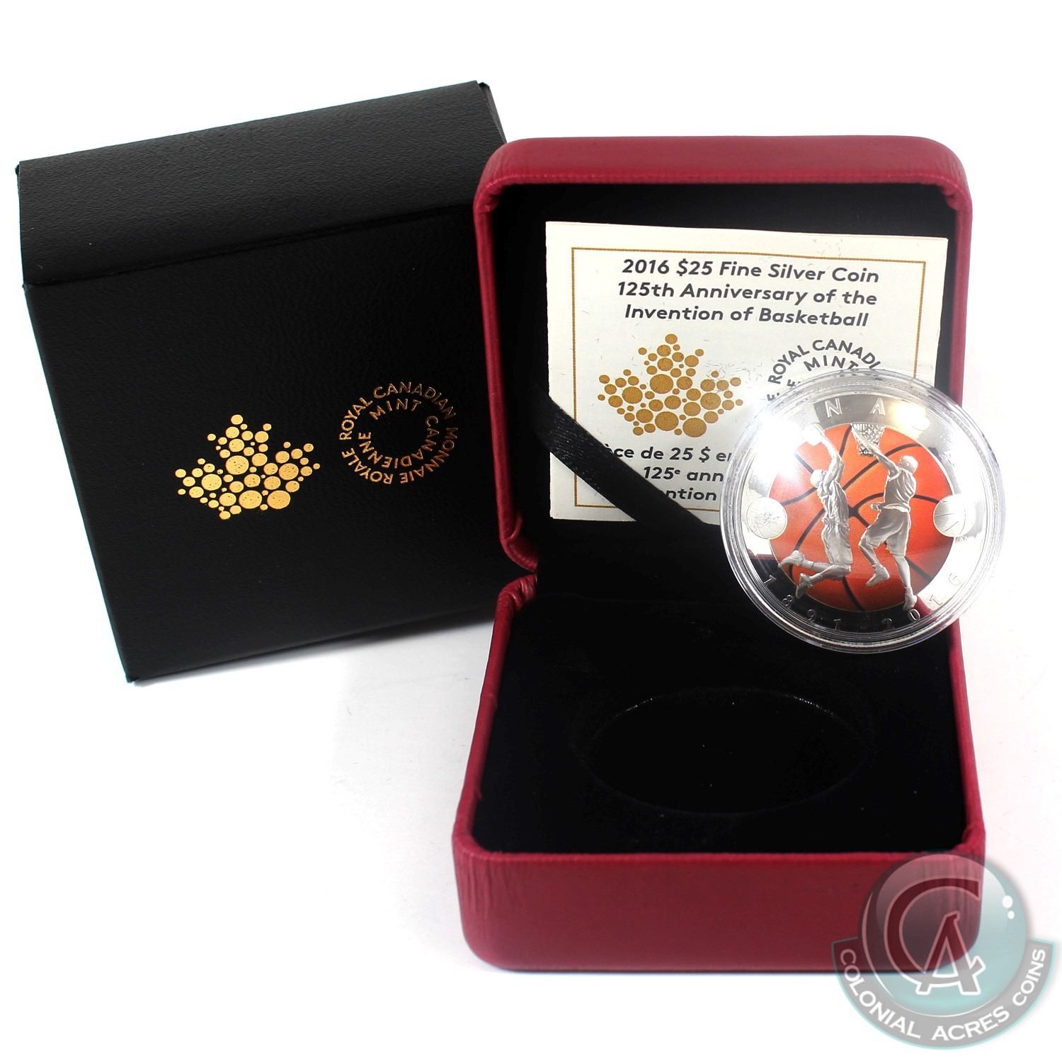 2016 Canada $25 Invention of Basketball Curved Fine Silver Coin. (TAX Exempt)