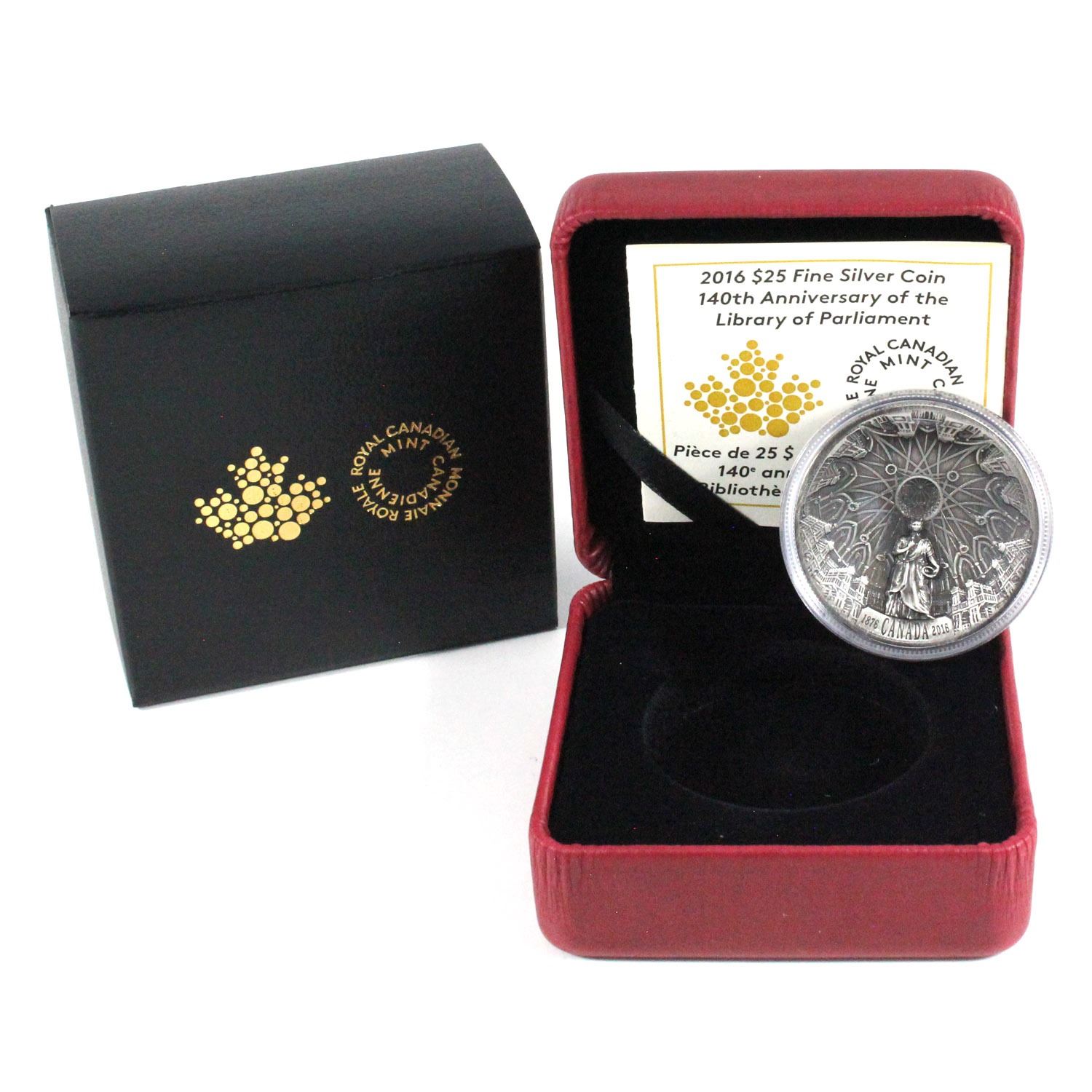2016 Canada $25 The Library of Parliament Antiqued Curved Fine Silver Coin. (TAX Exempt)
