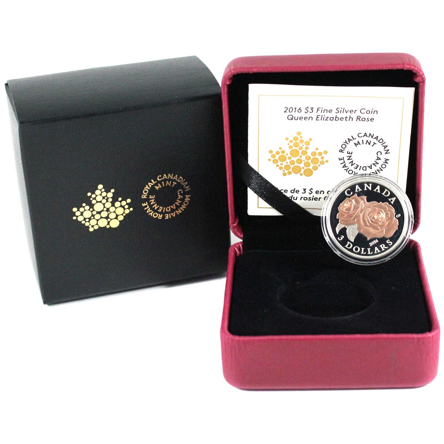2016 Canada $3 Queen Elizabeth Rose Fine silver coin (TAX Exempt). Coin is toned.