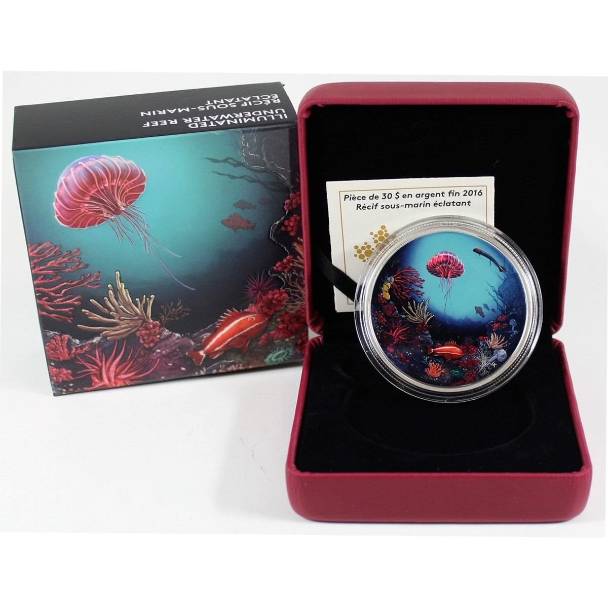 2016 Canada $30 Illuminated Underwater Reef Fine Silver Coin (Tax Exempt).
