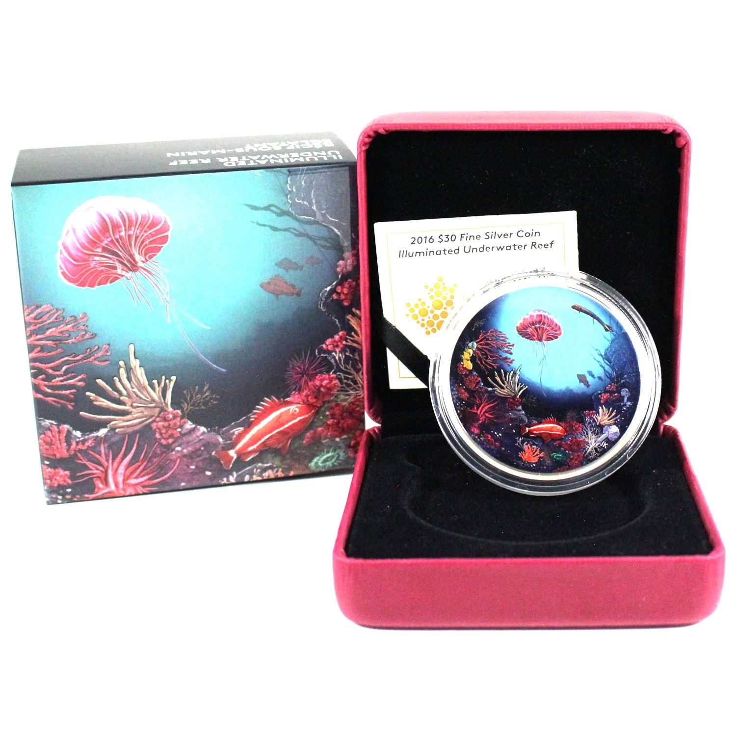 2016 Canada $30 Illuminated Underwater Reef Fine Silver Coin with Black light (Tax Exempt)