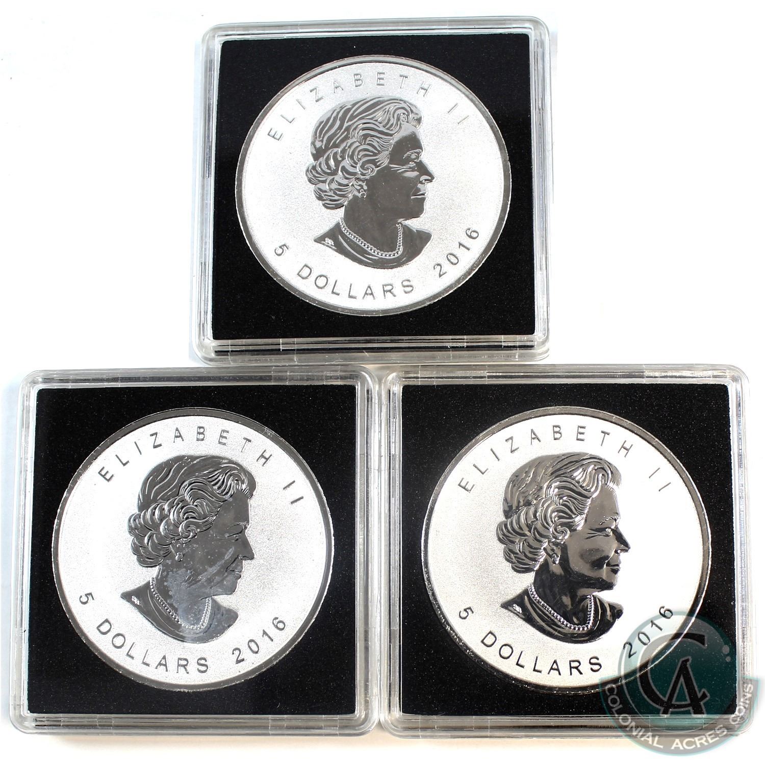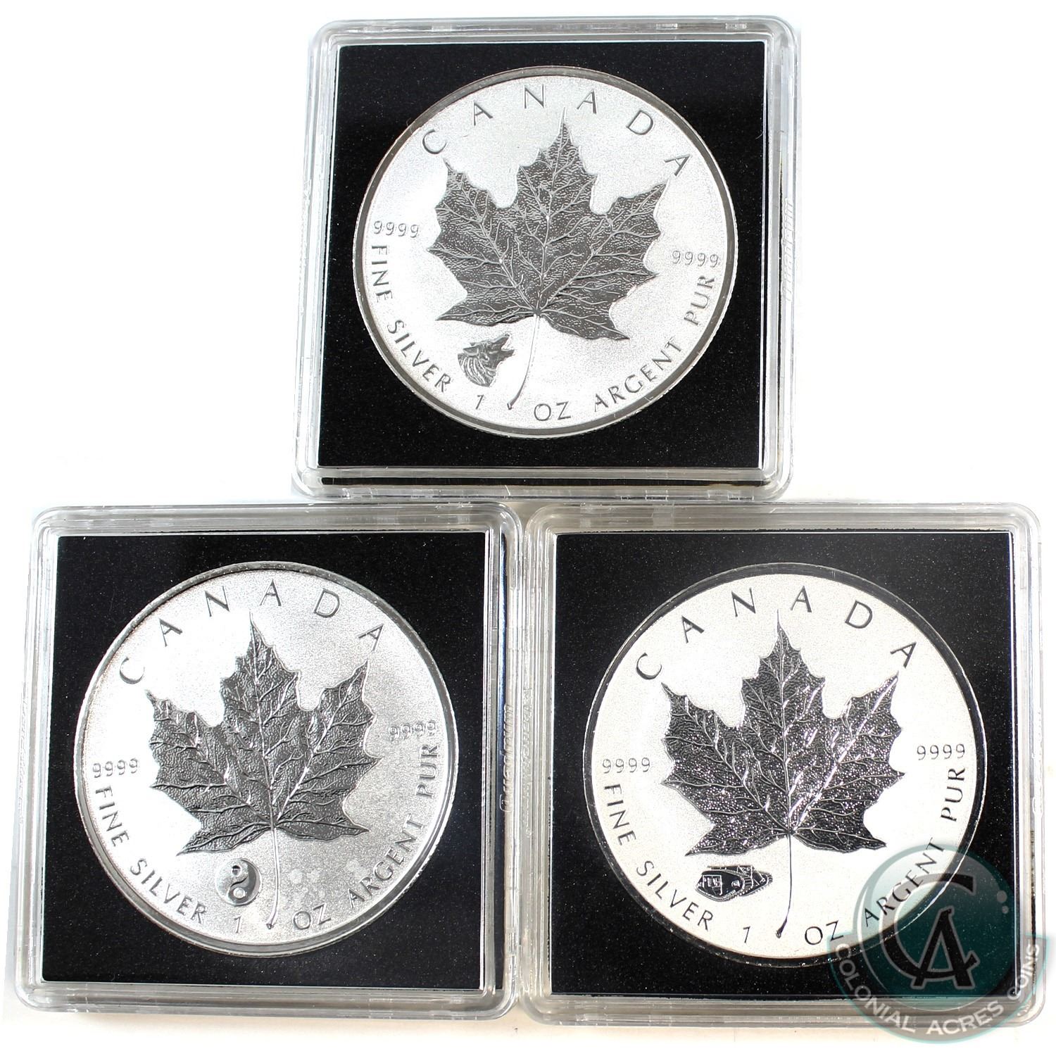 2016 Canada $5 1oz .9999 Fine Silver Privy Maple Leafs in Square Capsules - Wolf, Yin Yang & V Tank (Yin Yang & Wolf are toned). 3pcs (TAX Exempt)
