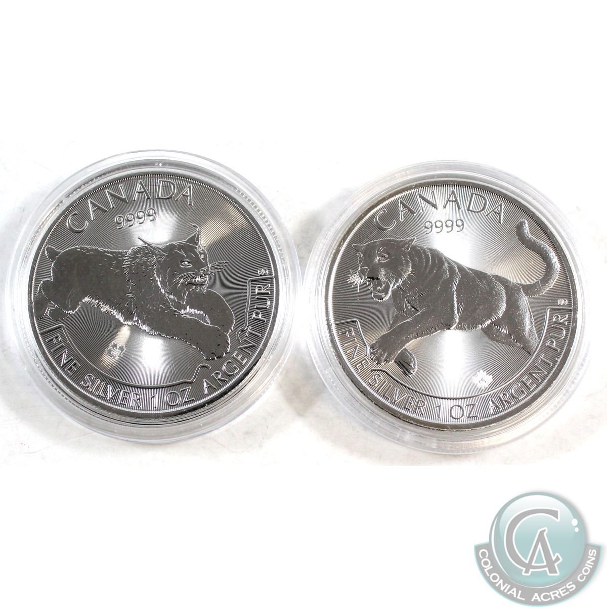 2016 Canada $5 Cougar Fine Silver Maple & 2017 Canada $5 Lynx Fine Silver Maple (Tax Exempt) 2pcs.