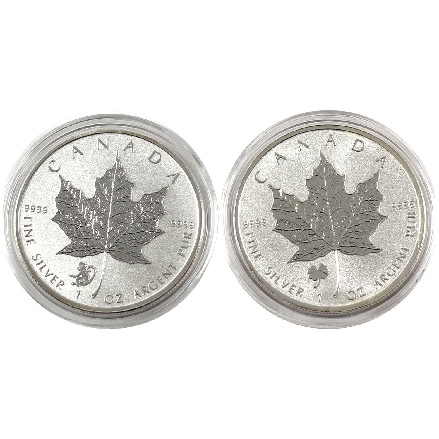 2016 Canada $5 Monkey Privy & Four Leaf Clover Privy 1oz Fine Silver Maples (Tax Exempt). Both coins come in protective capsules. 2pcs