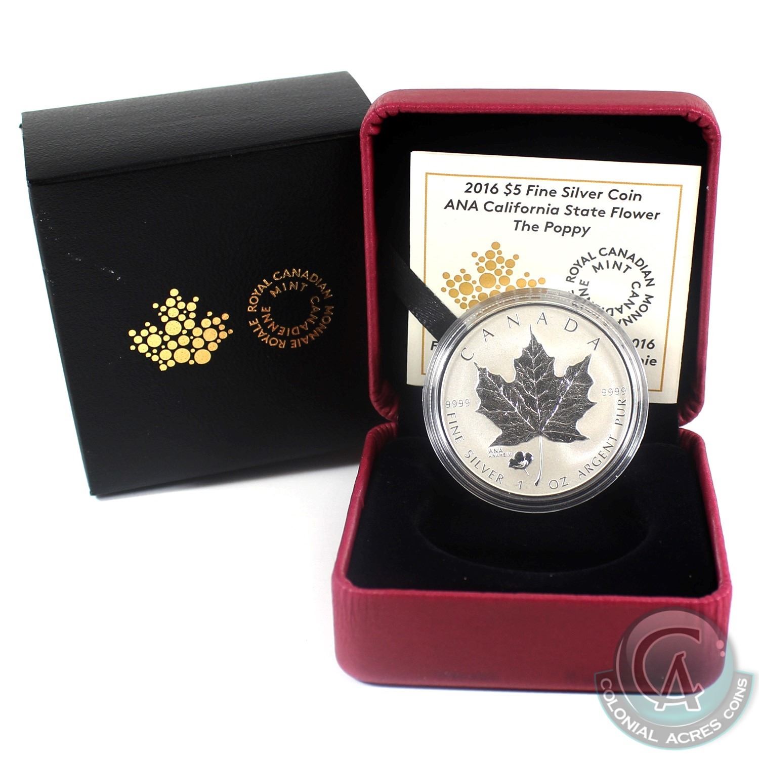 2016 Canada $5 Poppy Privy - ANA California State Flower Fine Silver Coin. (TAX Exempt)