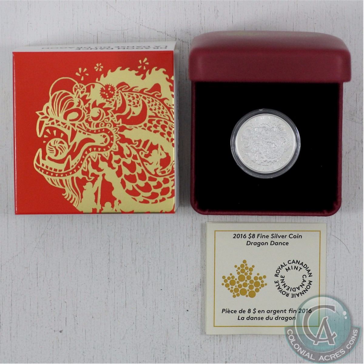 2016 Canada $8 Dragon Dance Fine Silver Coin issued by the RCM (TAX Exempt).