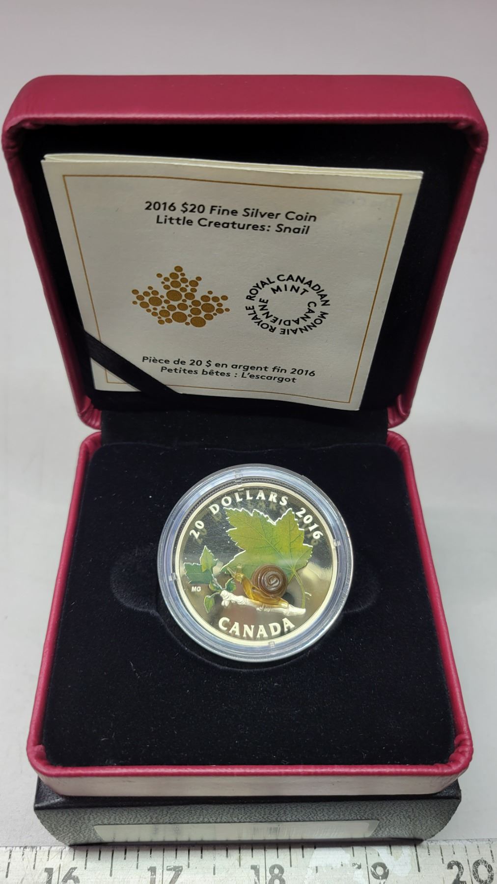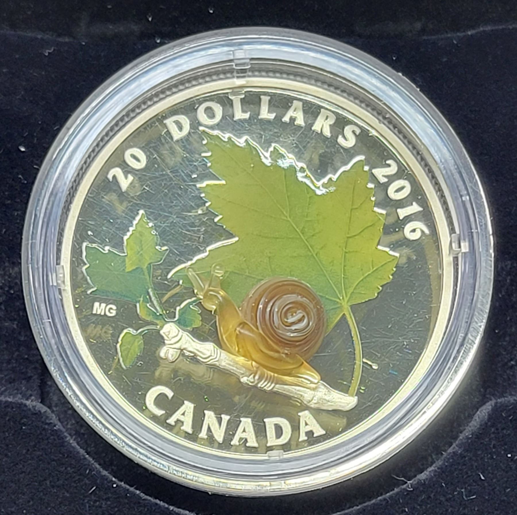 2016 Canada Fine Silver $20 Coin, Venetian Glass, Little Creatures: Snail, COA