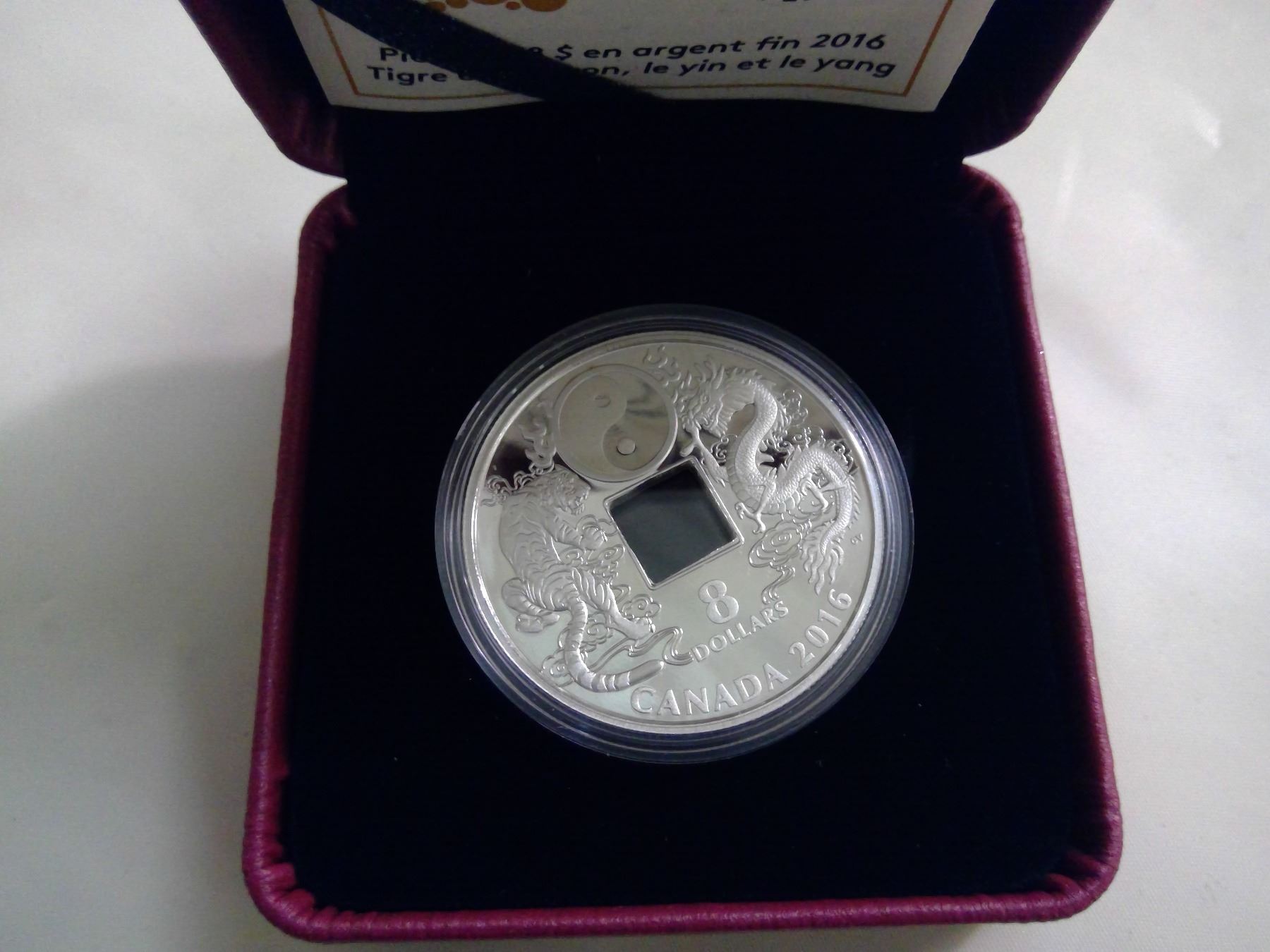 2016 Canada Fine Silver Proof $8 Tiger and Dragon Ying and Yang, COA
