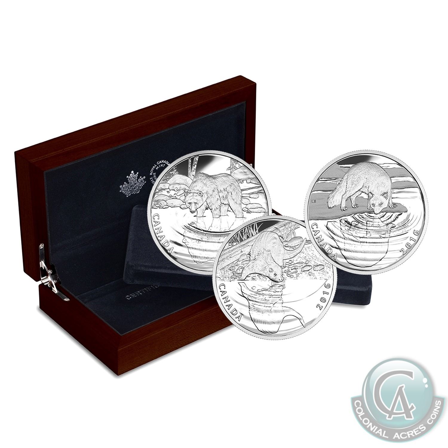 2016 Canada Reflections of Wildlife 3-coin Fine Silver Set in Deluxe Case (COA for grizzly bear is included & outer sleeve is bent). (TAX Exempt)