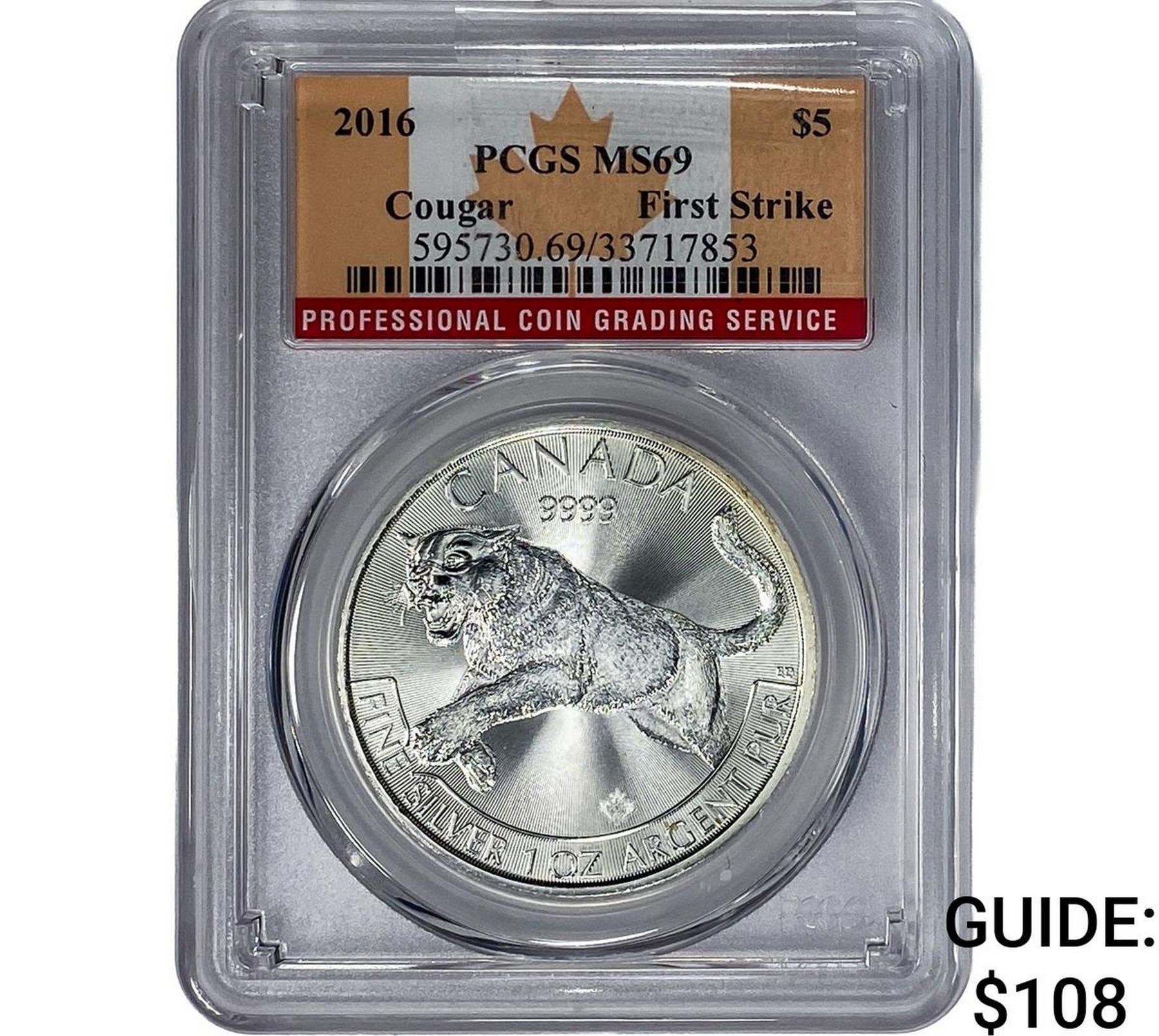 2016 Canada Silver $5 Dollar Cougar PCGS MS69 First Strike