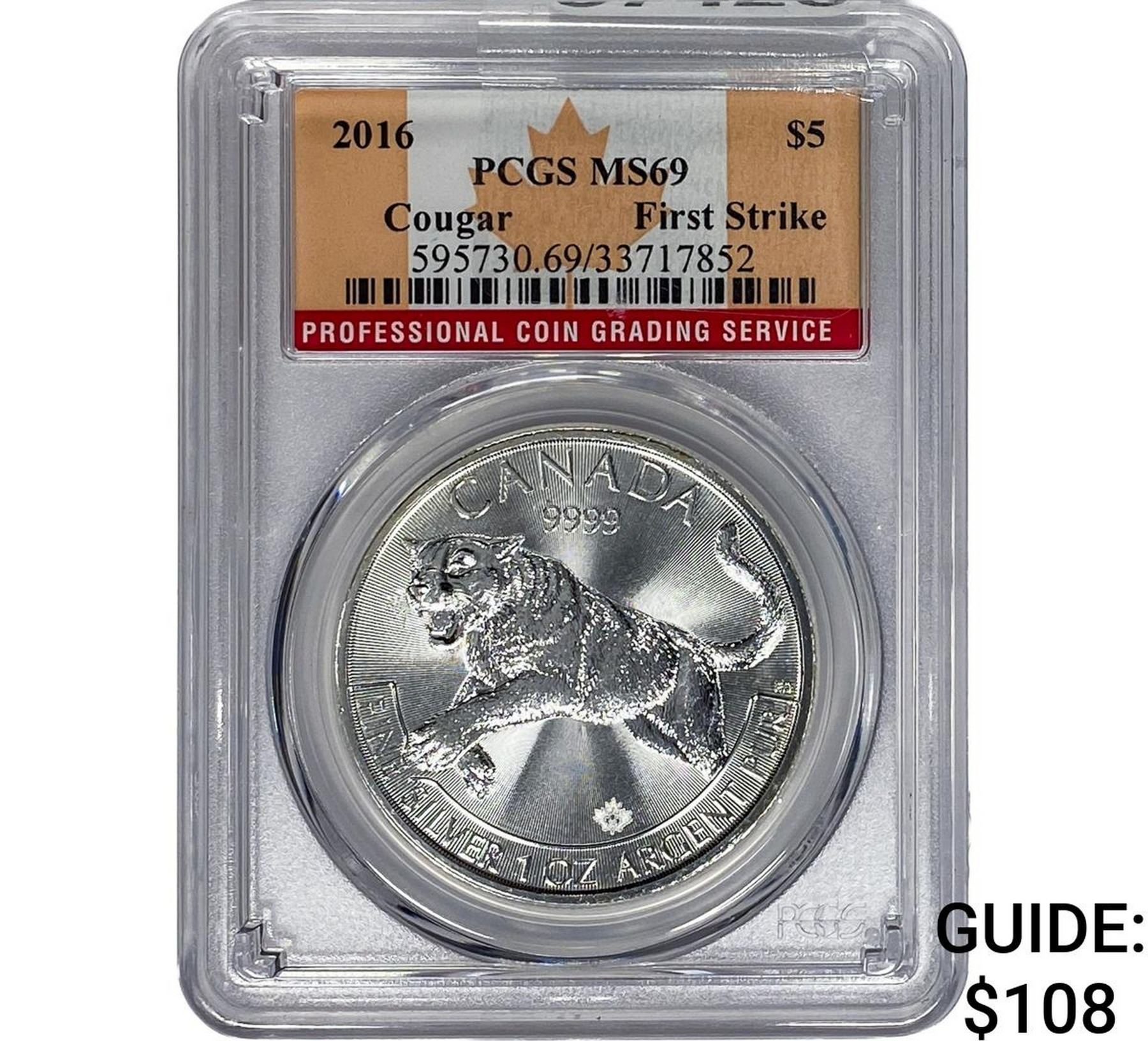 2016 Canada Silver $5 Dollar Cougar PCGS MS69 First Strike