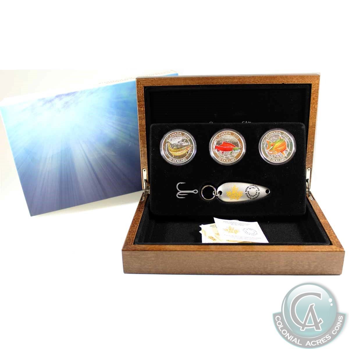 2016 Canadian Salmonids $20 3-coin Fine Silver Set with Fishing Lure in Deluxe Display Case (the Sockeye Salmon coin is toned) TAX Exempt