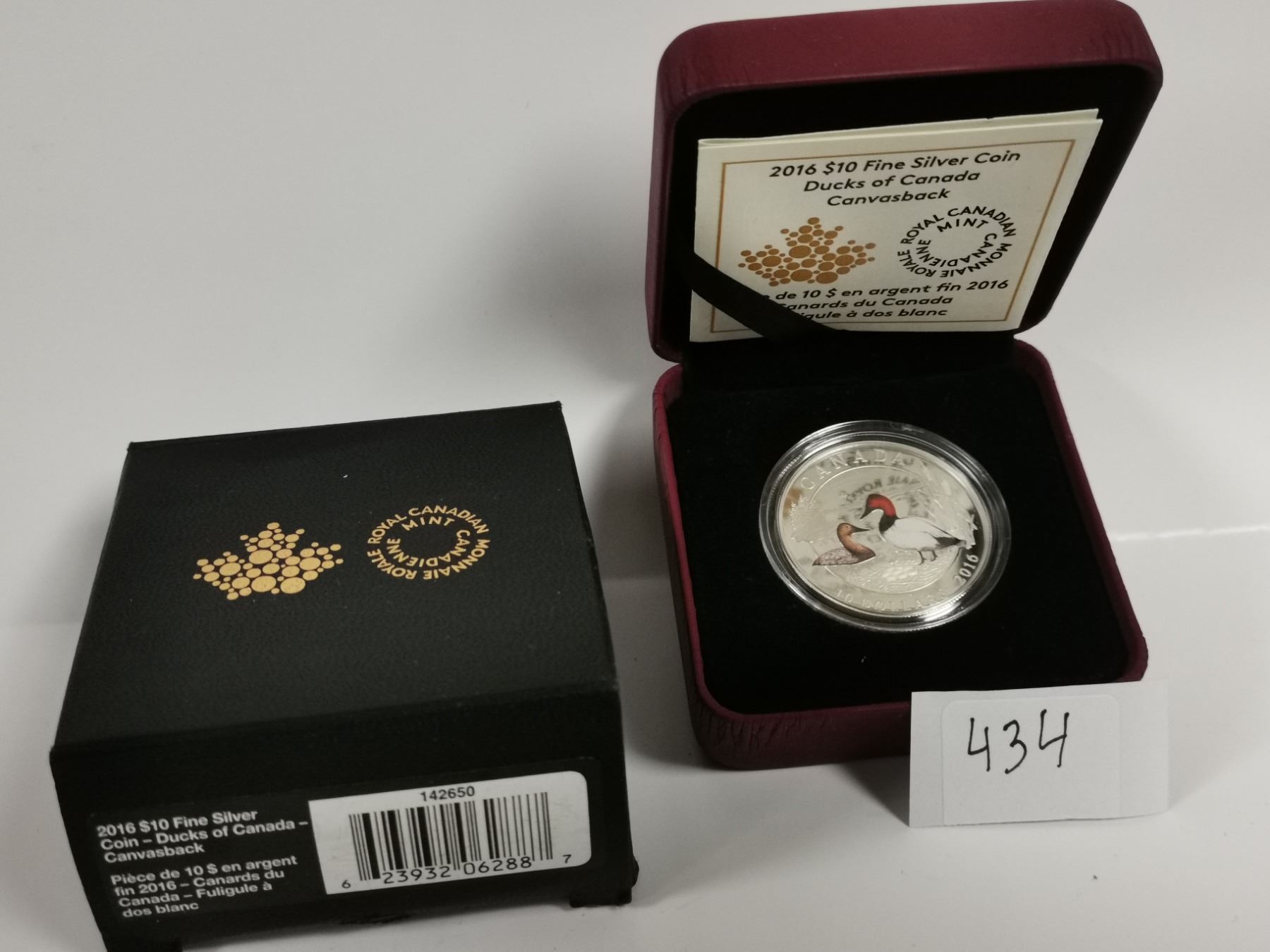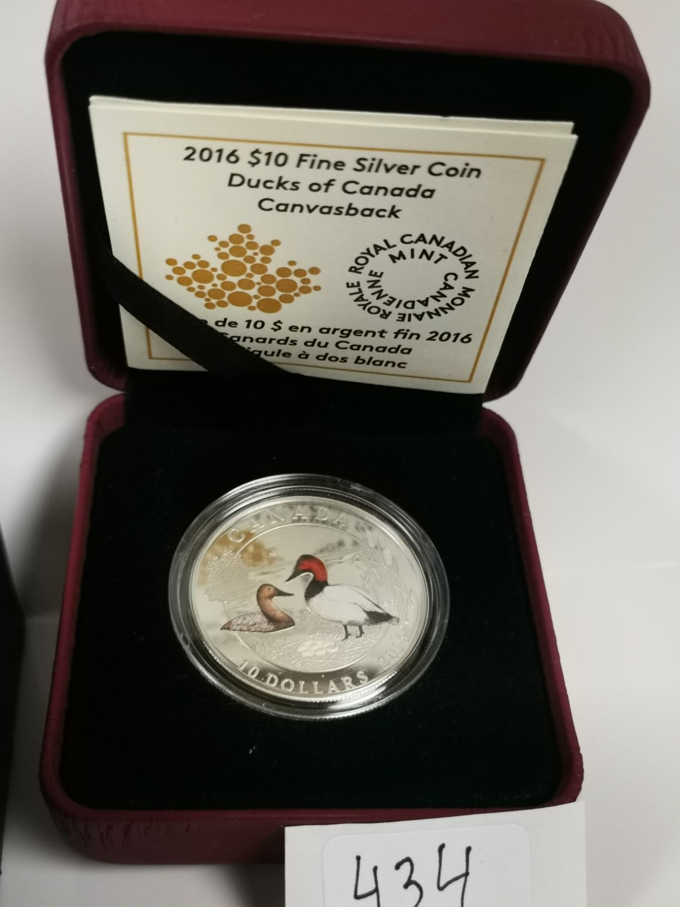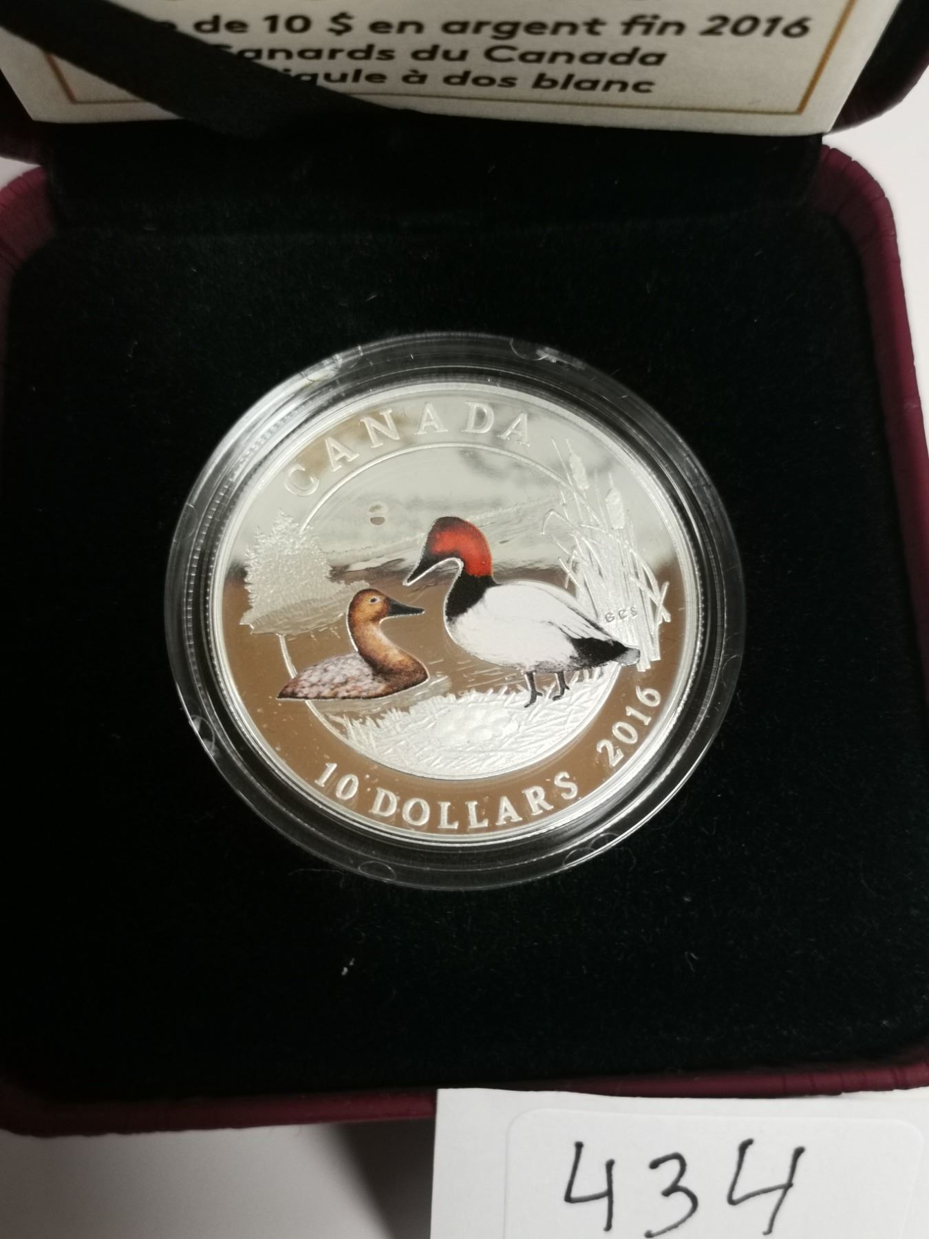 2016 Canvasback duck, Canadian 10 dollar fine silver coin