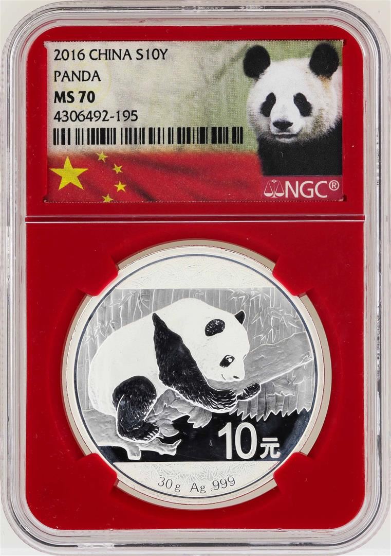 One 2016 China 10 Yuan Panda Silver Coin NGC MS70. NGC Certified.