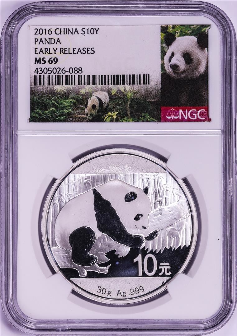 One 2016 China 10 Yuan Silver Panda Coin NGC MS69 Early Releases. NGC Certified.