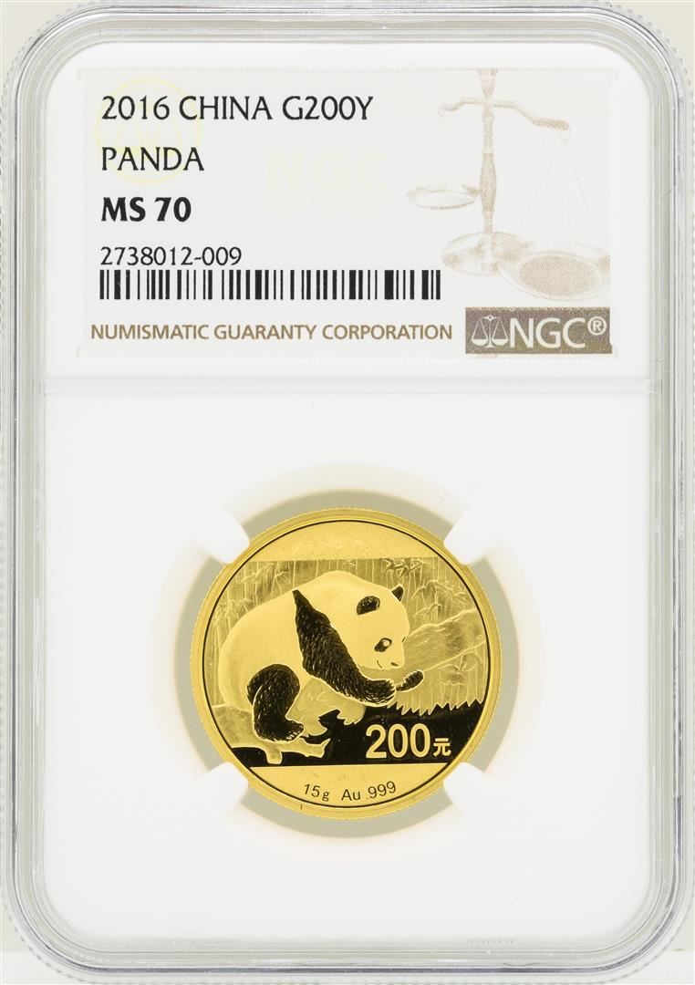 One 2016 China 200 Yuan Panda Gold Coin NGC MS70. NGC Certified.