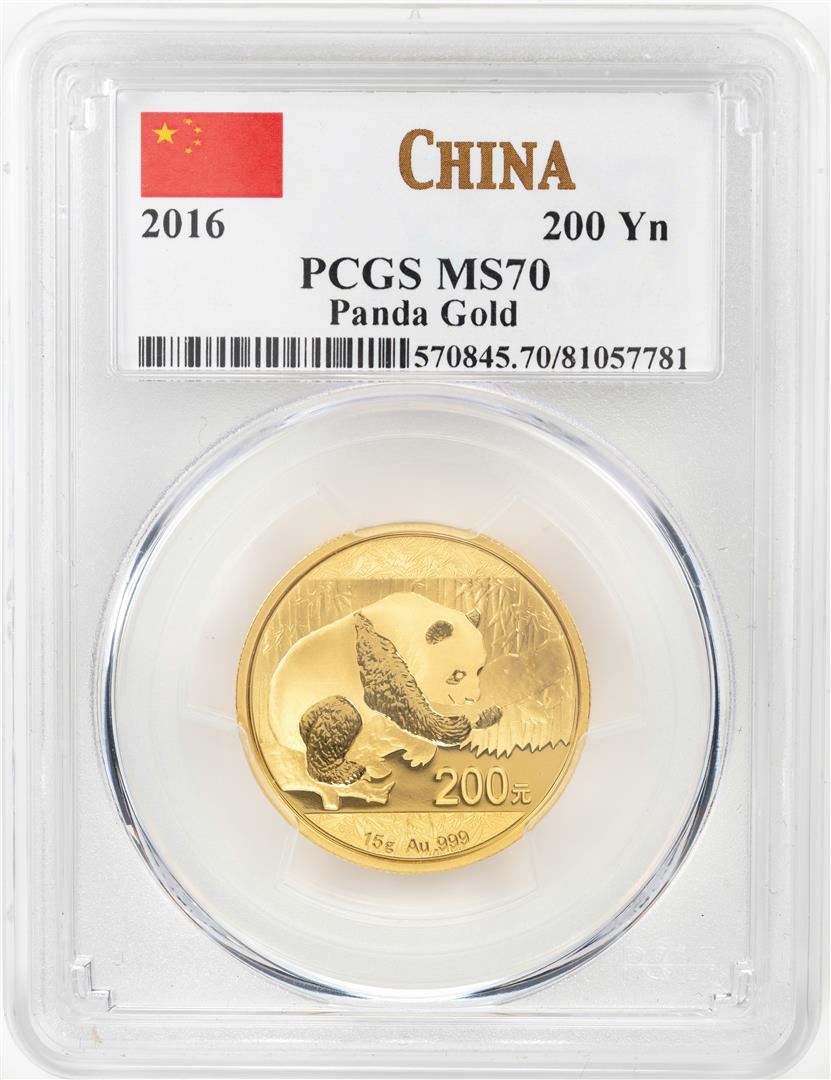One 2016 China 200 Yuan Panda Gold Coin PCGS MS70 First Strike. PCGS Graded.