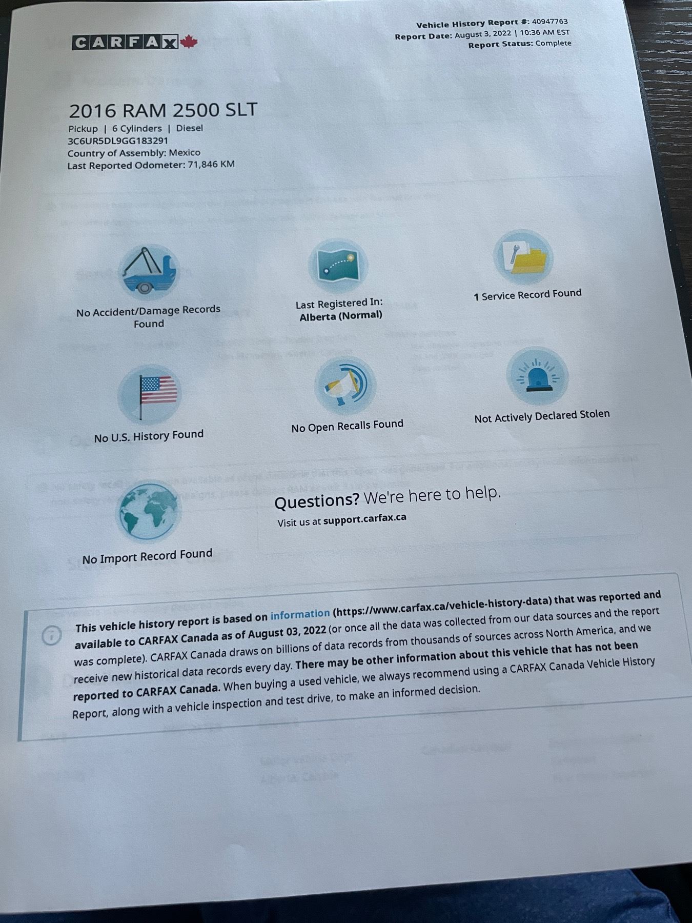 2016 Dodge Ram 2500 SLT Cummins - 4x4 - 4 door - Automatic - 90,708km