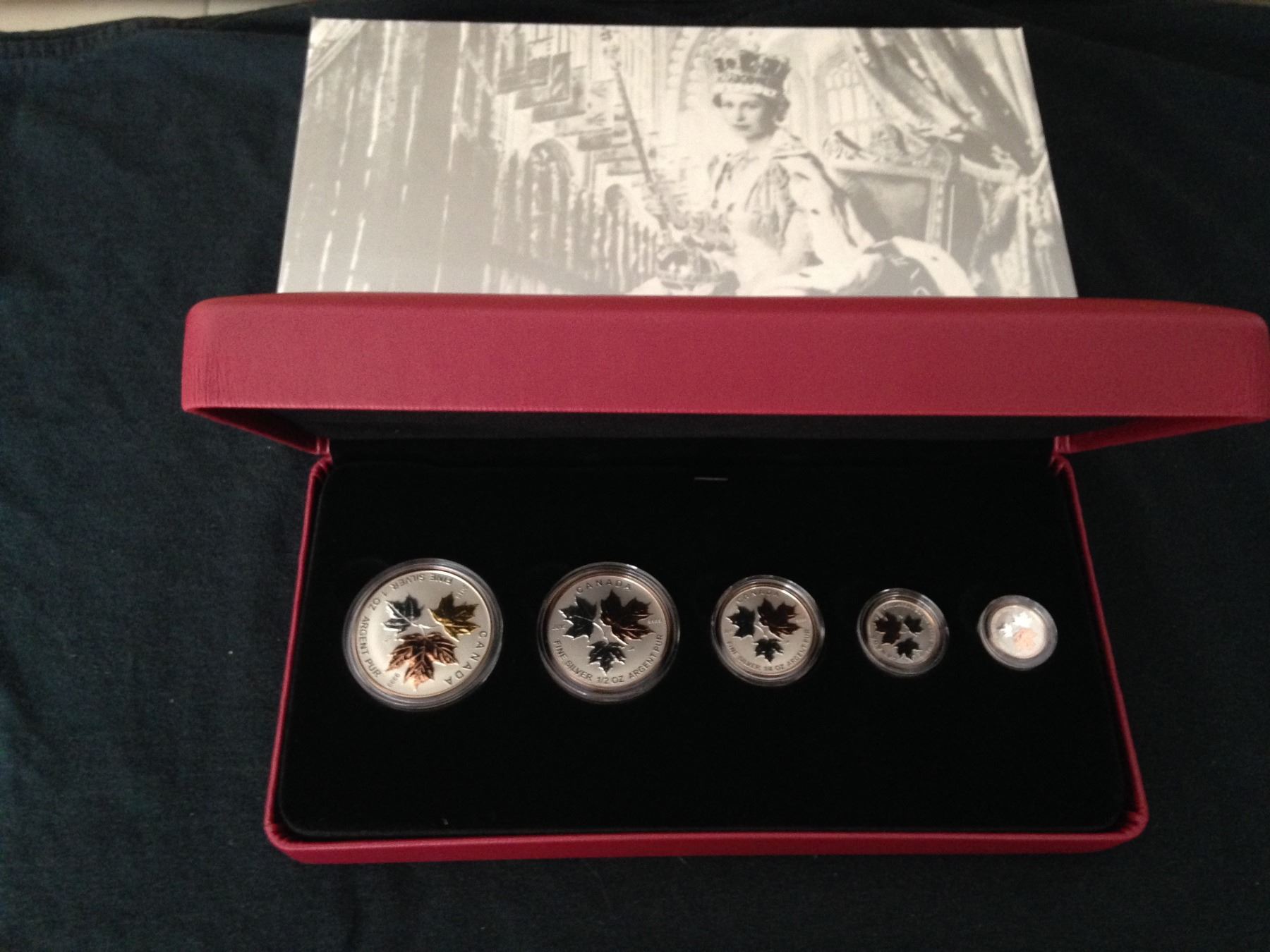 2016 Fine Silver Maple Leaf Fractional Set : Longest Reigning Sovereign set of 5 coins - 1, 1/2, 1/4, 1/10, 1/20oz